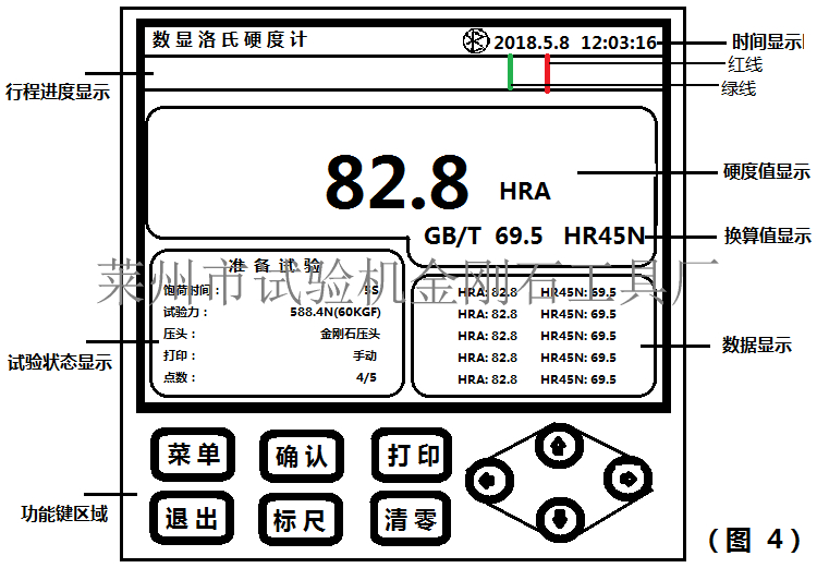 近年來,由于數(shù)顯洛氏硬度計測試精度高、無人為讀數(shù)誤差等優(yōu)點,越來越受到企業(yè)用戶的青睞,我廠生產(chǎn)的這款數(shù)顯洛氏硬度計較之以往市場的數(shù)顯洛氏硬度計的優(yōu)勢在于:1.采用高精度傳感器與精度萊金品牌金剛石壓頭(壓頭精度為標(biāo)準(zhǔn)級),確保儀器精度;2.可選配洛氏的其他標(biāo)尺;3.內(nèi)置軟件可對儀器進(jìn)行±3HR的補償;4.可自動轉(zhuǎn)化為其他標(biāo)尺硬度值?,F(xiàn)在就使用者較為關(guān)心的數(shù)顯洛氏硬度計屏幕主要功能鍵做下簡單介紹,若有進(jìn)一步了解的客戶可致電萊州市試驗機金剛石工具廠技術(shù)科:0535-2215886。